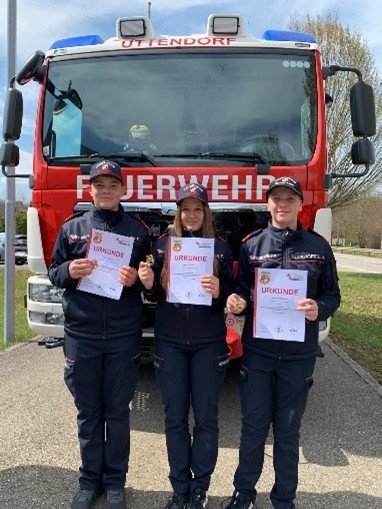 Der Leistungsprüfung in Gold stellten sich von unserer Jugendgruppe Eva Bernecker, Jakob Mairhofer und Paul Mayer. Dies ist die große Abschlussprüfung der Feuerwehrjugend. Alle drei meisterten diese Prüfung erfolgreich (siehe Foto) und erhielten dafür das Feuerwehrjugend-Leistungsabzeichen in Gold.